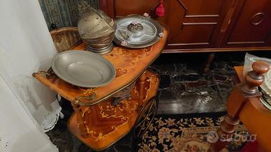 Nr. 1 Vassoio rotondo in peltro da portata ( antipastiera) con roselline in ceramica e pirottini rimuovibili in cristallo. €60