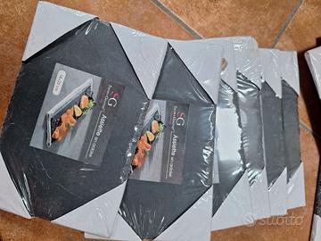 10 Vassoi/piatti in ardesia ancora confezionati 3 vassoi 25x26cm 1 vassoio 11x30cm 6 vassoi 14x22 Valuto anche vendita singola a 7€ l'uno