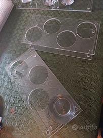 Vendo per inutilizzo 5 vassoi portabicchieri arredamento nautico. Due bassi per bicchieri tumbler, uno a ripiani sfalsati per flut e due vassoi per calici di cui uno per baloon piú alti e uno per calici più bassi. Tutto in ottime condizioni come nuovi.