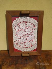 Vassoi/quadri vintage fatti a mano con cornice di legno pregiato e antico; all'interno vi sono quadri, fiori essiccati, pizzi o sfondo neutro da decorare.