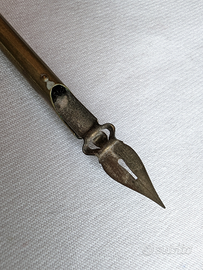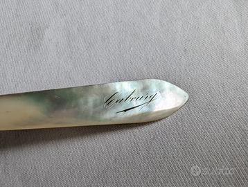 Penna da calamaio in metallo argentato e madreperla con incisioni in argento, di fattura francese, epoca Luigi Filippo (metà 800). Corredato da expertise.