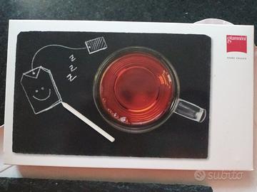 Piccolo vassoio in ardesia naturale, il materiale delle antiche lavagne, completo di gessetto per simpatiche personalizzazioni, in confezione originale.