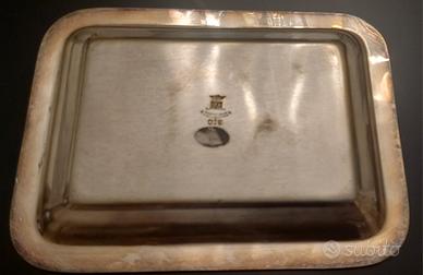Vendo come da foto, vassoio in metallo argentato 20,5×15,5 cm Sheffield Collection della Jordan con simbolo centrale che richiama le piume del Principe di Galles.