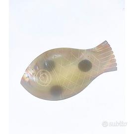 Vassoio a forma di pesce in madreperla, prodotto in Indonesia, 8x5cm.