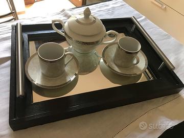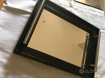 Vassoio handmade in legno e specchio con maniglie di acciaio. Nuovo.Mis. Cm 29x38