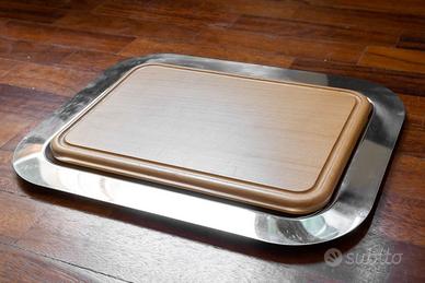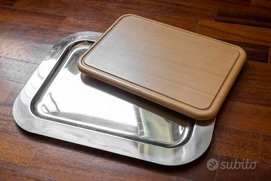 Vassoio in acciaio inox 18/10 con tagliere in legno