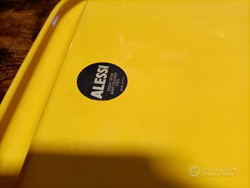 Il vassoio Alessi 5006/45, disegnato dal celebre Maestro del design italiano Ettore Sottsass, è un pezzo iconico di modernariato che unisce rigore geometrico e vivacità cromatica. Questa specifica versione è realizzata in acciaio inossidabile 18/10 rivestito con resina epossidica in una distintiva tonalità gialla.