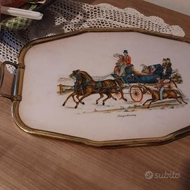 Antico vassoio in ottone e vetro. Immagine oleografica scena di vita inglese, con cavalli e carrozza, dame e gentiluomini. Manufatto ottagonale risalente agli anni '30 - 40 del secolo scorso, con struttura in ottone e vetro. Raro. Dimensioni cm.54 x32,3. Non spedisco.