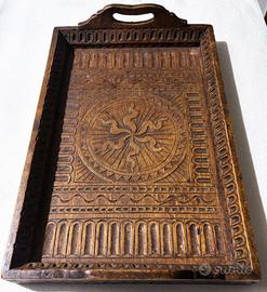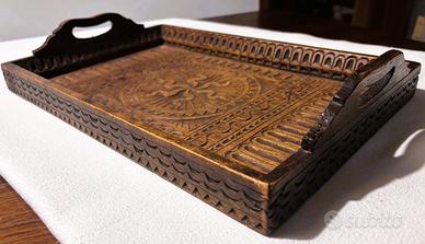 Vassoio Antico in Legno Intagliato a Mano (42×28)