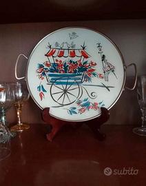 Bellissimo e raro vassoio anni 50 art nouveau con manici