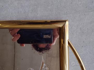 vassoio da arredo e uso quotidiano con manici piano in vetro decorato e rifiniture bagnate oro misure 45x32 praticamente nuovo