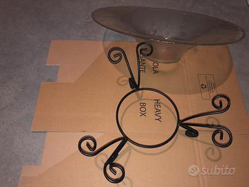 Elegante centrotavola in vetro, con supporto in ferro, saprà abbellire e valorizzare la vostra tavola. Perfetto anche per il vostro tavolo da salotto nonché per un bel mobile del disimpegno. .