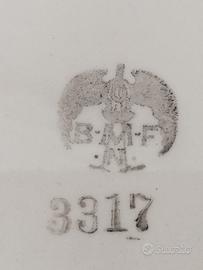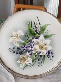 antico vassoio in ceramica e acciaio con dipinto floreale del 1913 della ditta tedesca Bmf .