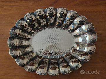 Vendo vassoio ovale firmato "Cassetti", silver plated fatto a mano. Peso 775 grammi. Lunghezza 39 cm circa.