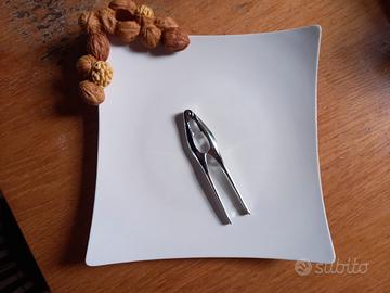 Elegante vassoio centrotavola porta noci NADIR in ceramica bianco con bordo decorato con noci e schiaccianoci