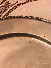 Vassoio centrotavola con bordo scolpito vintage punzonato 8/00 affiancato da altro punzone circolare. Anni ‘30. Dimensione: diametro cm. 35.