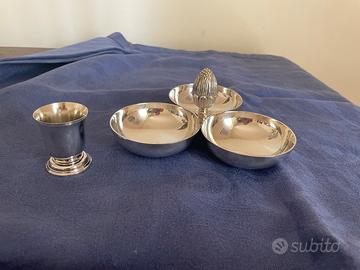 Vassoio a 3 ciotole per servire aperitivi o dolcetti Christofle Gallia. Pesa 530 grammi. Usato raramente. Astenersi offerte ridicole