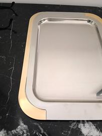 vassoio rettangolare con bordo in oro 24 kt. Un pezzo elegante e raffinato, perfetto per servire o come elemento decorativo degli anni 70/80.
