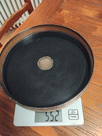 Vassoio diametro 26, con bordo lavorato in argento, peso gr 550 totali. Ritiro a domicilio, non si effettua spedizione.