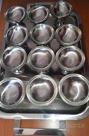 Sono coppette in acciaio ottime per gelato e/o spumante , corredate da vassoio , utilizzate ben poco.