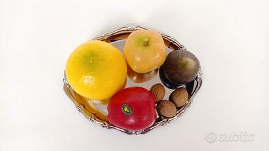 vassoio INOX vintage Made in Italy (per le misure vedi foto), compreso di n.7 elementi fac simile di frutta. ottime condizioni generali.