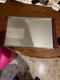 Vassoio in legno con specchio anni 50 misura 40 cm per 24 cm
