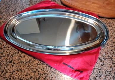 Vassoio ovale in acciaio inox con tagliere in legno di ontano rimovibile (58x32 cm).