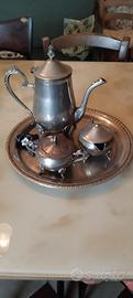 Vendo vassoio con teiera e zuccheriera in acciaio