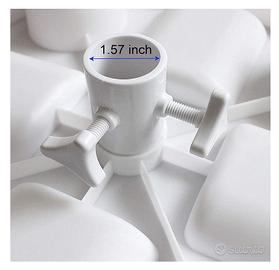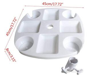 Vassoio da ombrellone in plastica ABS, bianco, grandi dimensioni, resistente e facile da pulire, con pratiche vaschette portaoggetti, sostegno per fissarlo all'ombrellone dotato di adattatore, utilizzabile su pali da 25 a 38 millimetri di diametro.