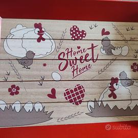 Vassoio decorativo in legno con un simpatico disegno di gallinelle e cuori.