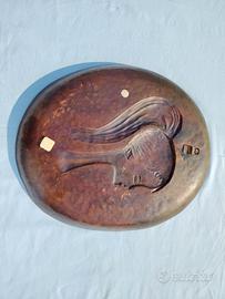 Vendo vassoio "quadro" da arredamento in rame, lavorato a mano, con effige di giovane testa di donna al centro.