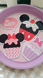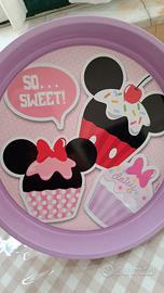 Grazioso vassoio rotondo con un allegro design a tema Disney. - Decorato con simpatici cupcake e la scritta So... Sweet!. - Colori vivaci e dettagli curati. - Bordo rialzato per contenere meglio gli alimenti.