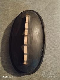 Vassoio portavivande coperto in legno. Oggetto africano autentico scolpito a mano colore bruno scuro