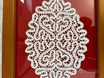 Bellissimo vassoio ricamato a mano in pizzo di cantu
