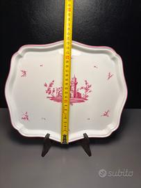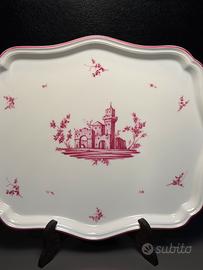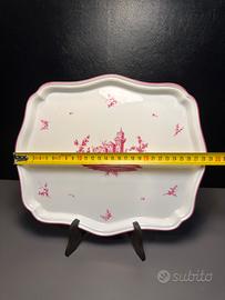 Elegante vassoio in porcellana Richard Ginori con decoro Castelli Romani in delicato colore rosa.