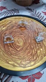 Il vassoio è stato decorato a mano con pigmenti metallici di alta qualità nelle tonalità dell'oro, bronzo e rame, creando un effetto vortice dinamico e ipnotico che brilla sotto la luce. La superficie è rifinita con uno strato di resina epossidica trasparente che conferisce una lucentezza a specchio e garantisce massima resistenza.