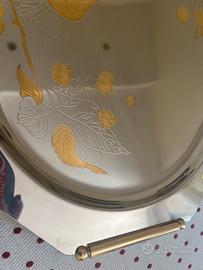 Per inutilizzo vendo vadsoio di forma ottagonale in accoaio con manici e disegno di foglie in oro zecchino.