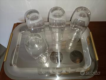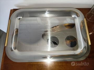 Vassoio in acciaio inox. Può essere usato come portabicchieri, come nelle foto. Bicchieri non inclusi.