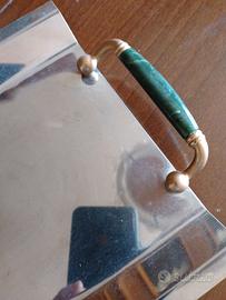 Vendo vassoio forma rettangolare,con manici,un po' particolare e con inciso nel mezzo una rosa nel davanti e una dietro.