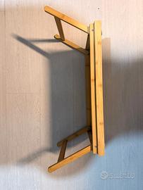 Vendo vassoio rettangolare in bambù, semplice e molto resistente. È in buone condizioni, pulito e senza difetti. Ha i bordi alti per non far scivolare quello che porti e i manici laterali per prenderlo bene. Comodo sia per la colazione a letto che per portare caffè o bevande agli ospiti. Molto leggero e facile da tenere in ordine.