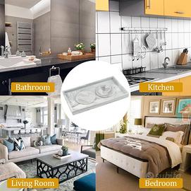 2. CERAMICA DI ALTA QUALITÀ: Realizzato in ceramica di alta qualità, il nostro vassoio presenta una finitura lucida e un design elegante con una struttura marmorizzata. La sua superficie liscia non solo è attraente, ma è anche resistente all'umidità, rendendolo adatto ad ambienti umidi come il bagno