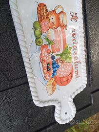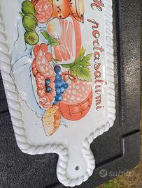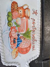 Tagliare: vassoio da usare o appendere il portasalumi in ceramica. misure 36 cm x 17 cm. Astenersi perditempo e affaristi vari. prezzo trattabile. Eventuale spedizione a carico dell' acquirente. Ho disponibilità di altre cose per la cucina eventualmente