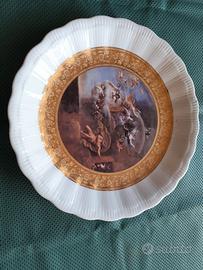 Vassoio in ceramica marcato "Limoges Francia" con disegno rappresentante angeli in cielo Diametro 32 cm.