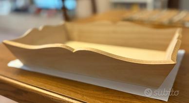 Vassoio in legno grezzo, ideale per decoupage, pittura e decorazione. Bordi sagomati. 299,5x20,5 cm.