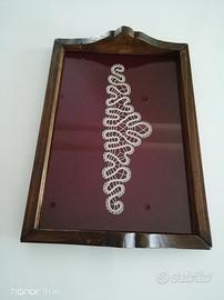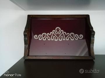 Vassoio in legno e vetro, con inserto ricamato. Ideale per servire caffè e dolci, per decorare la casa oppure ottimo come idea regalo. Praticamente nuovo e in ottime condizioni.