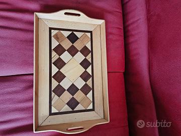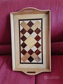 vassoio con vari tipi di legno realizzato a mano con motivo a scacchiera misure 42x27