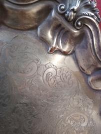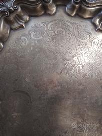 Elegante vassoio in rame argentato, punzonato, perfetto per servire o come elemento decorativo.