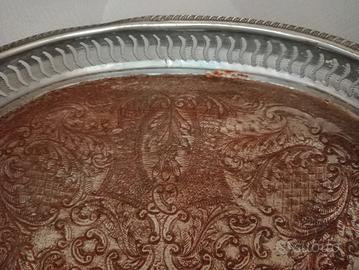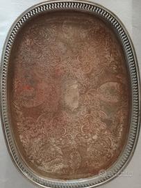 vassoio in Sheffield con decorazioni e balaustrina di forma ovale dim 30 x 22