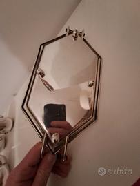 piccolo delizioso vassoio in silver con manici in legno e piedini dimensioni 15 per 30 cm in ottimo stato