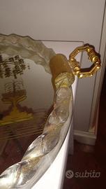 ~Vassoio in vetro di Murano in oro 24kt ~Ottime condizioni ~Vetro di Murano principe e principessa con manici in bronzo dorato ~Vetro veneziano made in Italy ~Altezza 27 cm ~Larghezza 34 cm